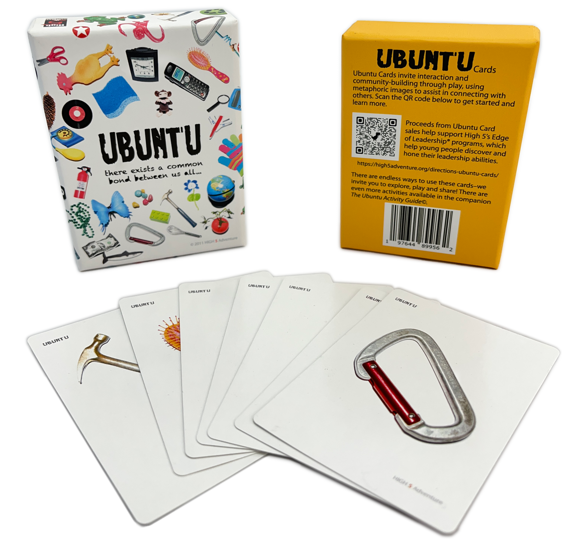 High 5's Ubuntu Cards are a multi-functional deck of cards that encourage a group to interact, find connections, and have fun. There are 54 cards in each deck. The cards offer limitless reflection opportunities through metaphor, but we have also discovered that they also offer just as many opportunities for group interaction and creative play.